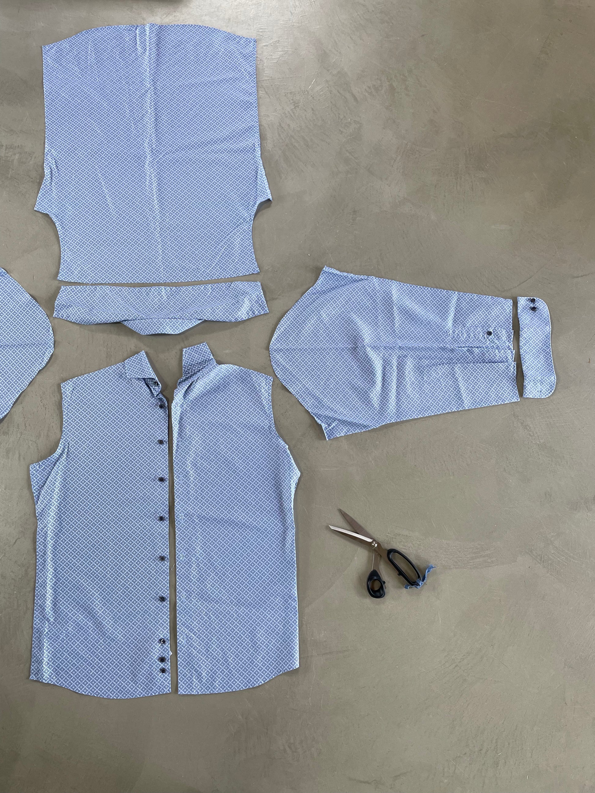 Herreskjorter er ideelle til upcycling og re-design, fordi de ofte er syet i kvalitetsmaterialer som bomuld, poplin, hør m.m. De har et tidløst snit som lægger op til mange kreative muligheder.