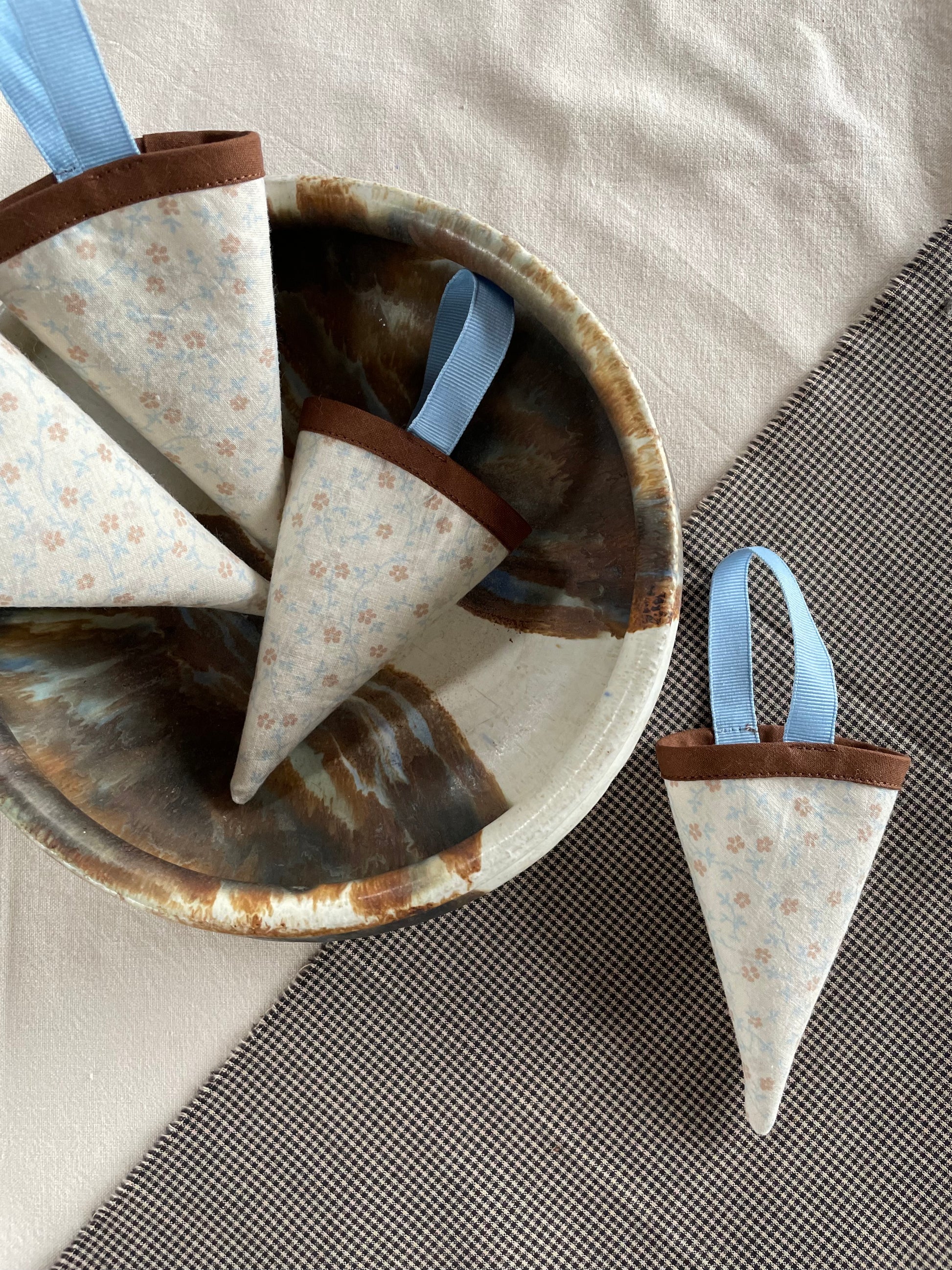 Håndlavet kræmmerhus, syet af upcyclede tekstiler - dette kræmmerhus er af bomuld.