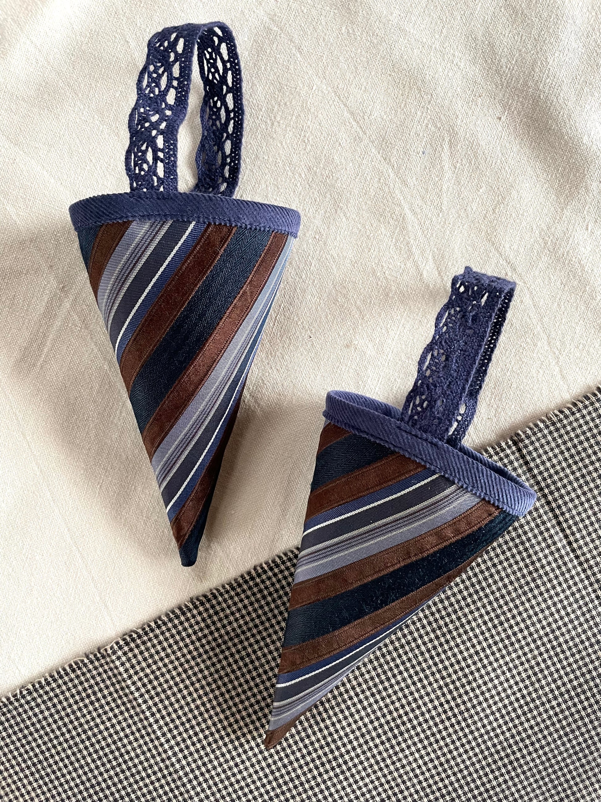 Håndlavet kræmmerhus, syet af upcyclede tekstiler - dette kræmmerhus er af silke.
