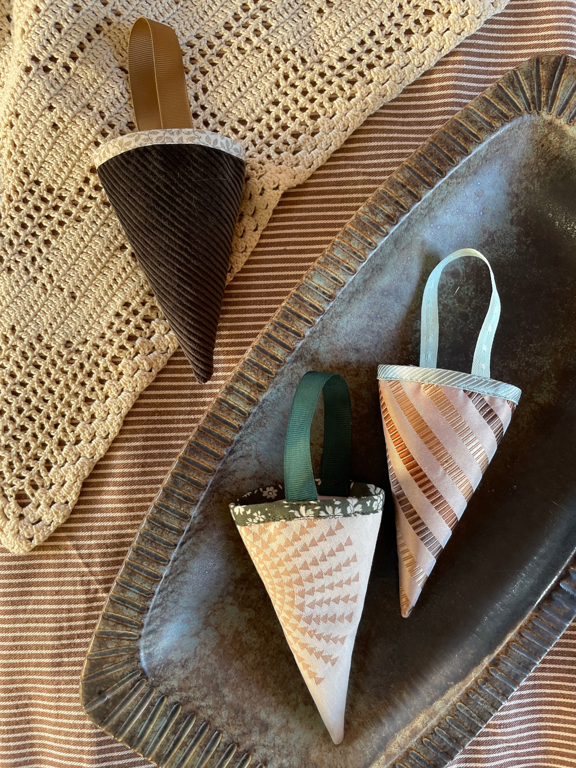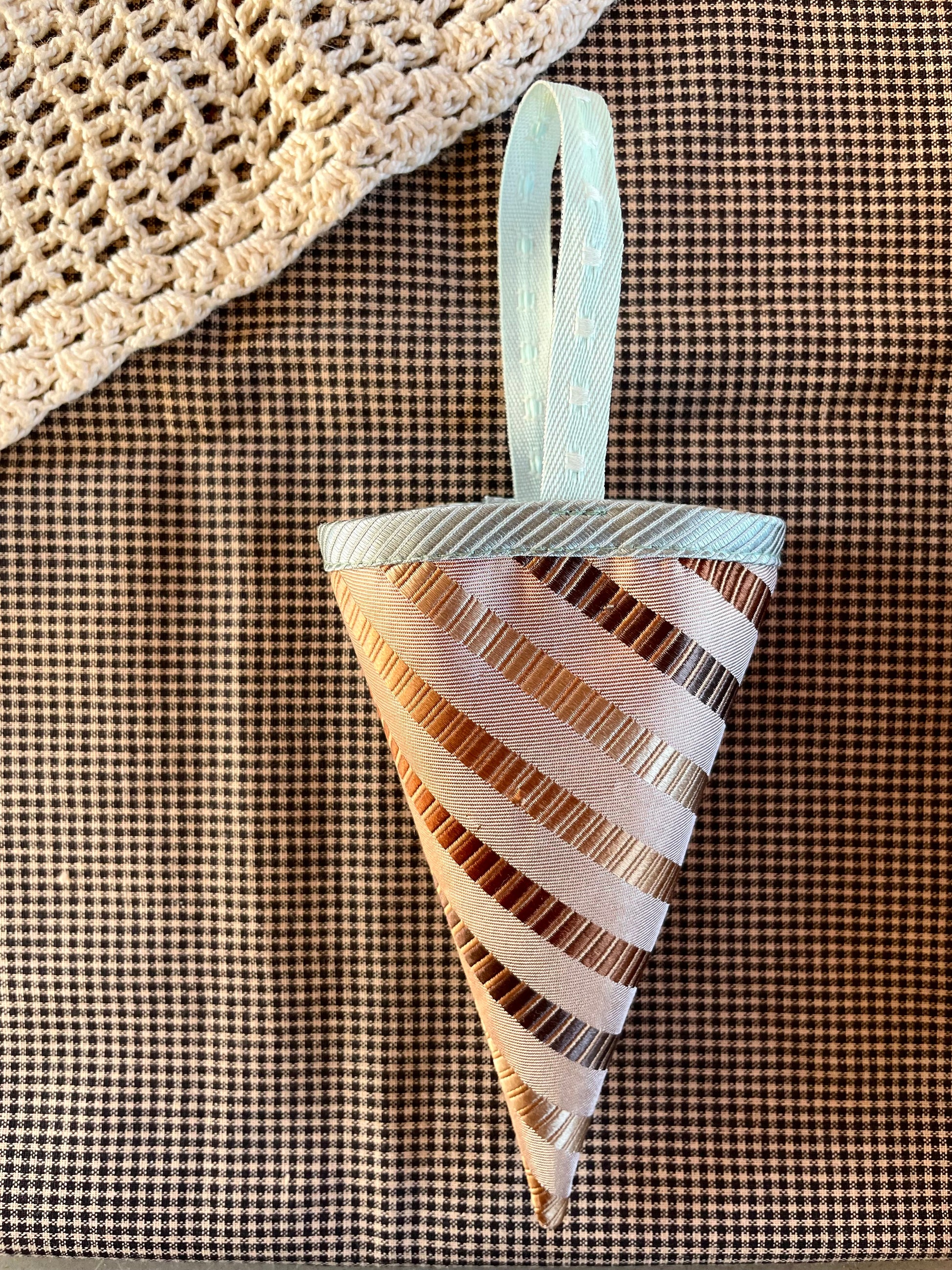 Håndlavet kræmmerhus, syet af upcyclede tekstiler - dette kræmmerhus er af silke.