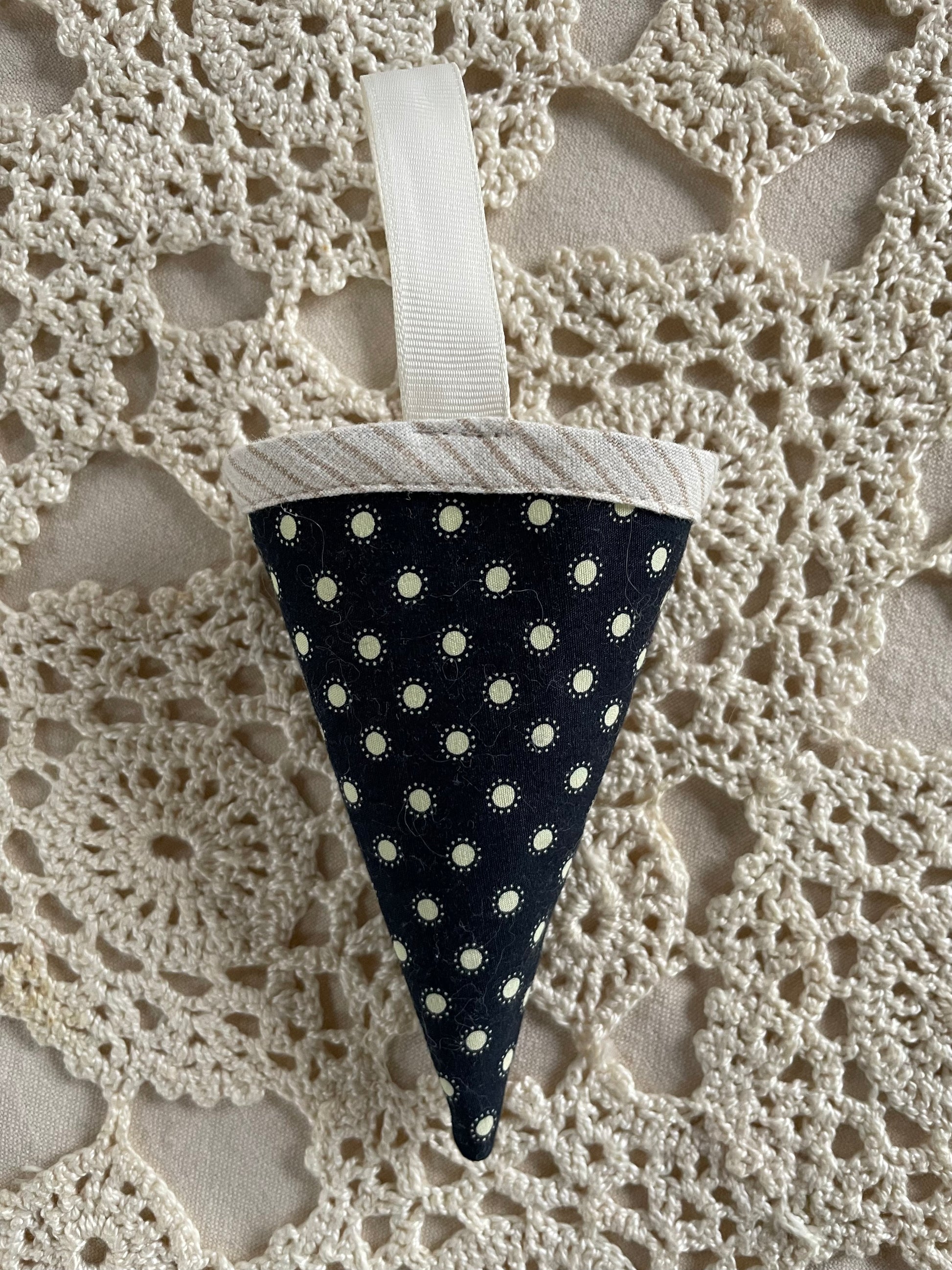 Håndlavet kræmmerhus, syet af upcyclede tekstiler - dette kræmmerhus er af bomuld.