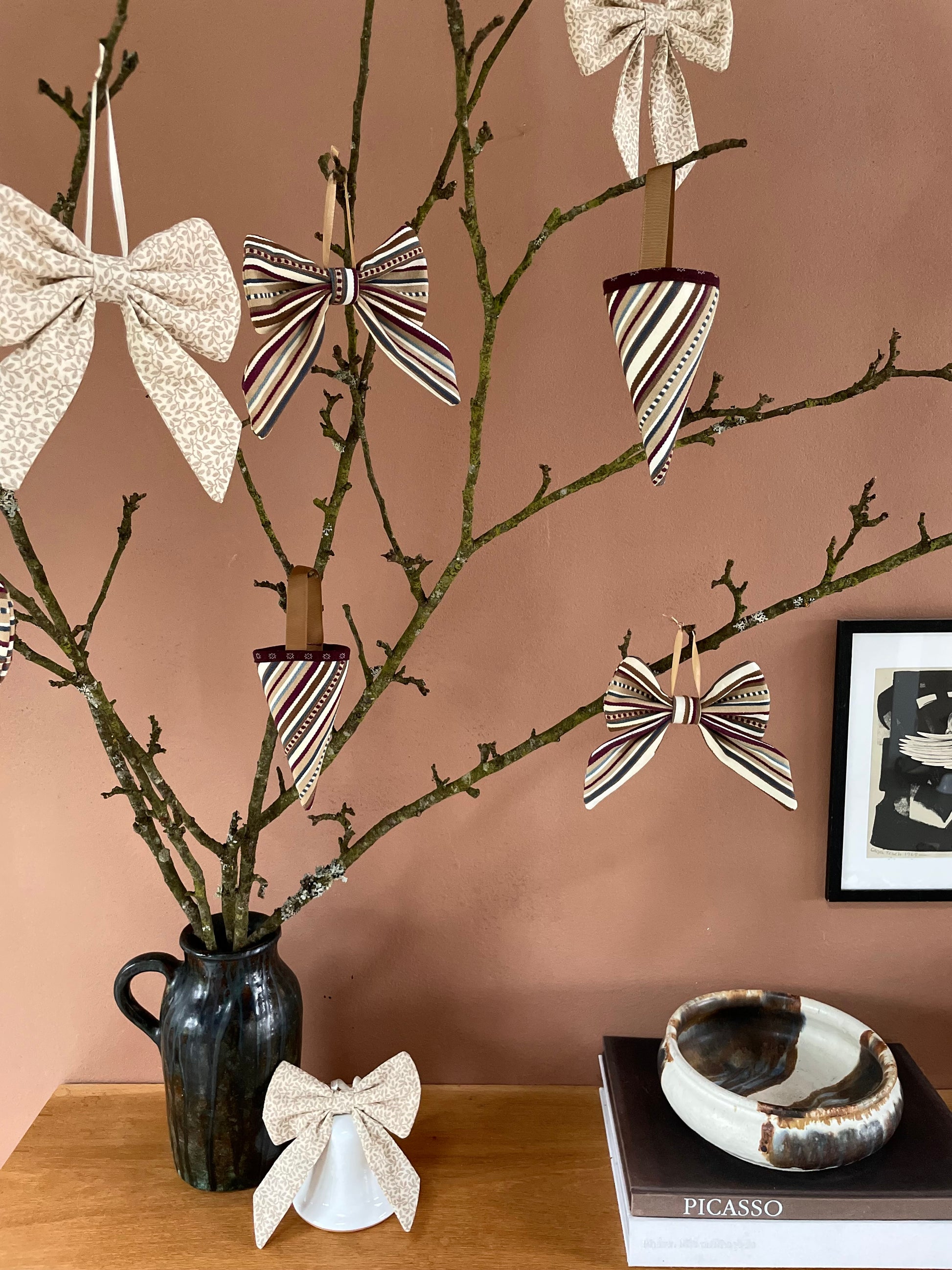 Håndlavet julesløjfe, syet af upcyclede tekstiler - denne sløjfe er af vævet struktur-vævet bomuld