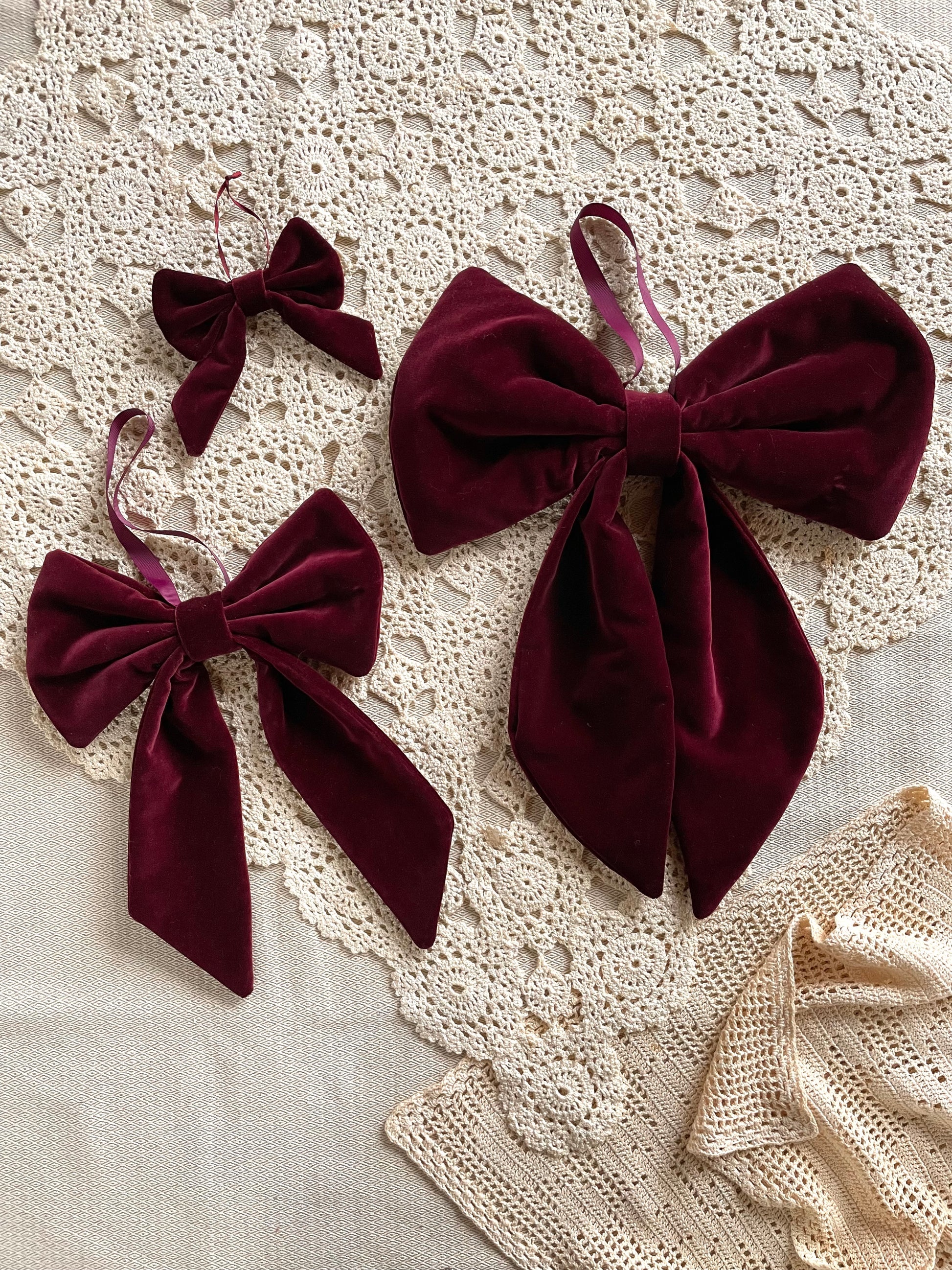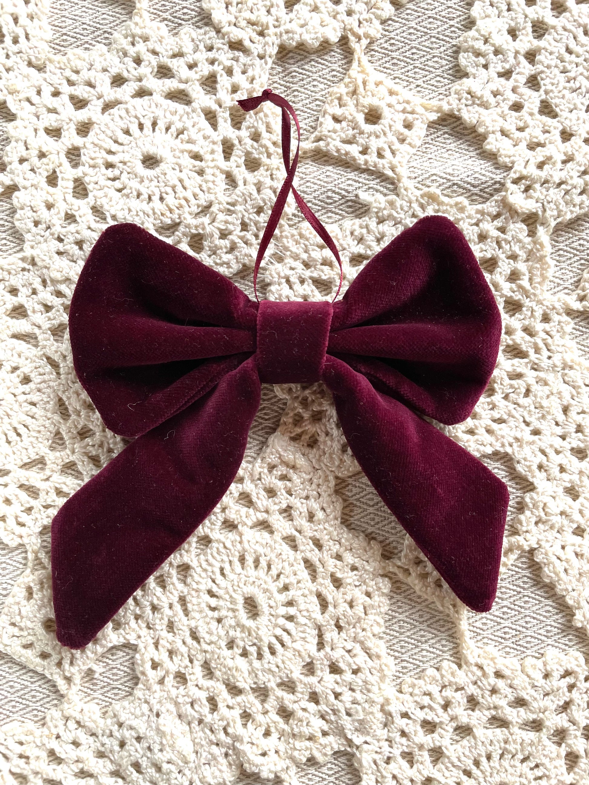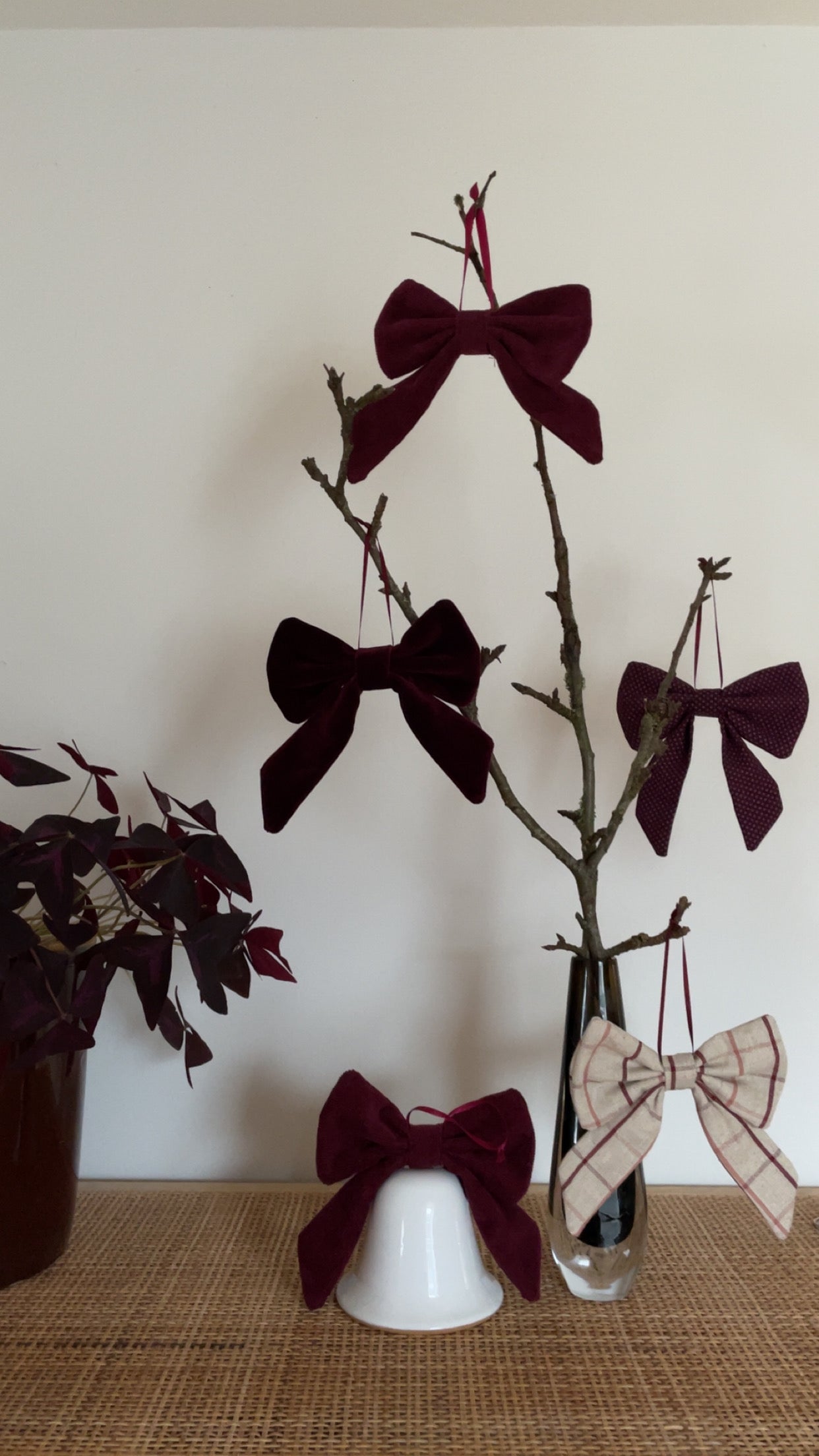 Håndlavet julesløjfe, syet af upcyclede tekstiler - denne sløjfe er af mørkerød bomulds velour.